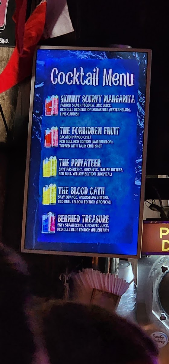 1.5 oz vodka 1.5 oz cranberry 0.5 oz peach schnapps red bull orange edition